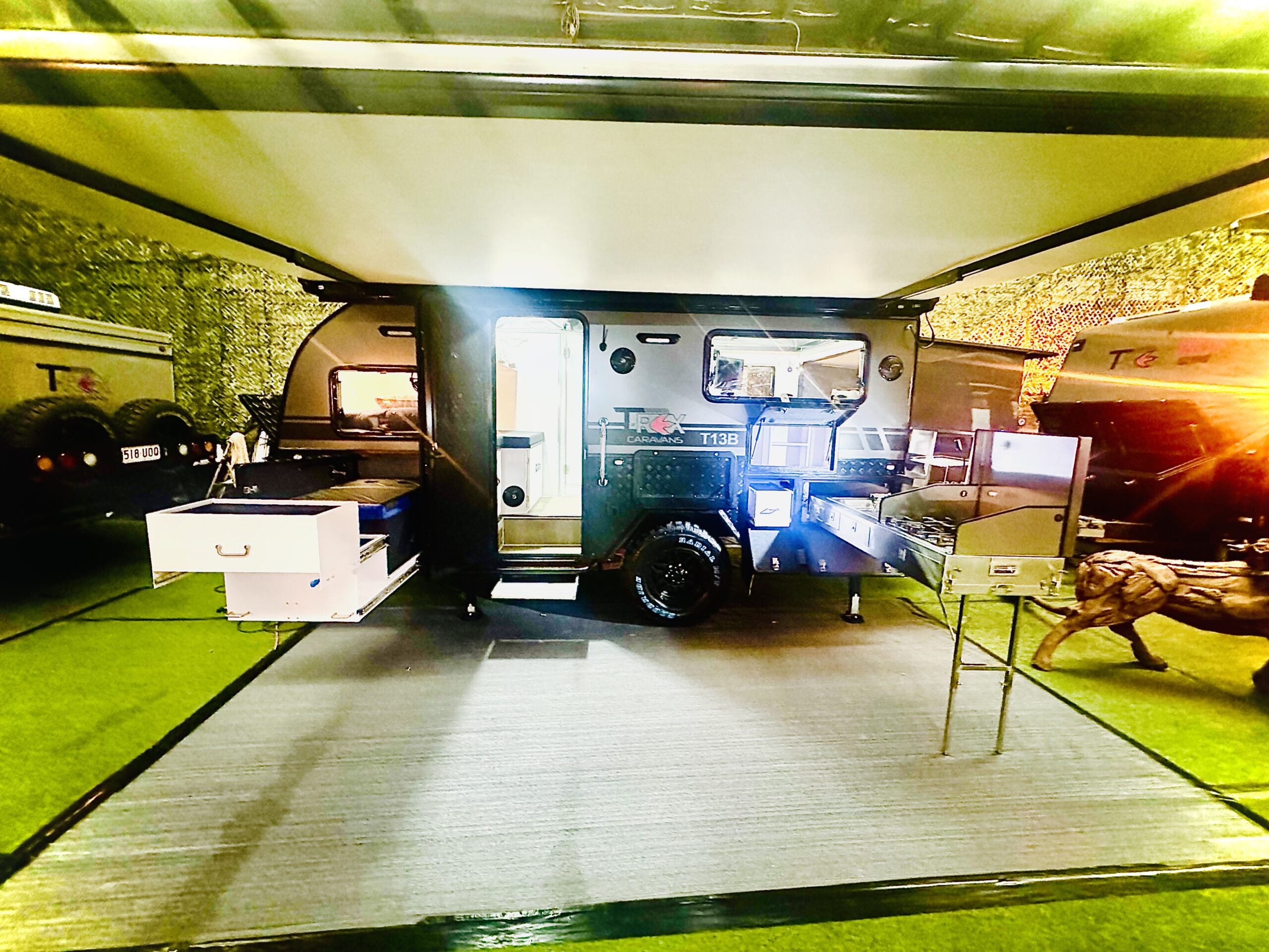 Live the dream! The T-Rex Offroad Caravan is designed for the toughest off-road adventures. Its heavy-duty independent coil suspension ensures your safety on every journey, while you travel in utmost internal luxury.