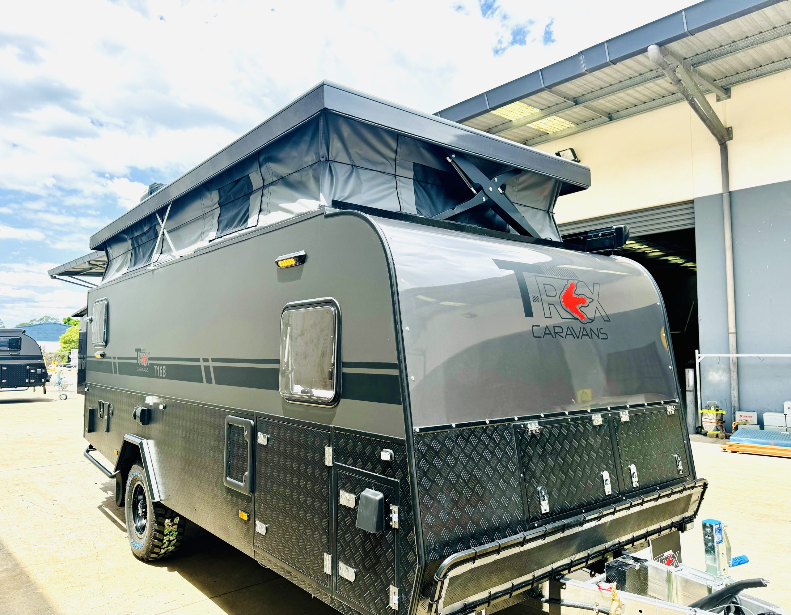 Live the dream! The T-Rex Offroad Caravan is designed for the toughest off-road adventures. Its heavy-duty independent coil suspension ensures your safety on every journey, while you travel in utmost internal luxury.